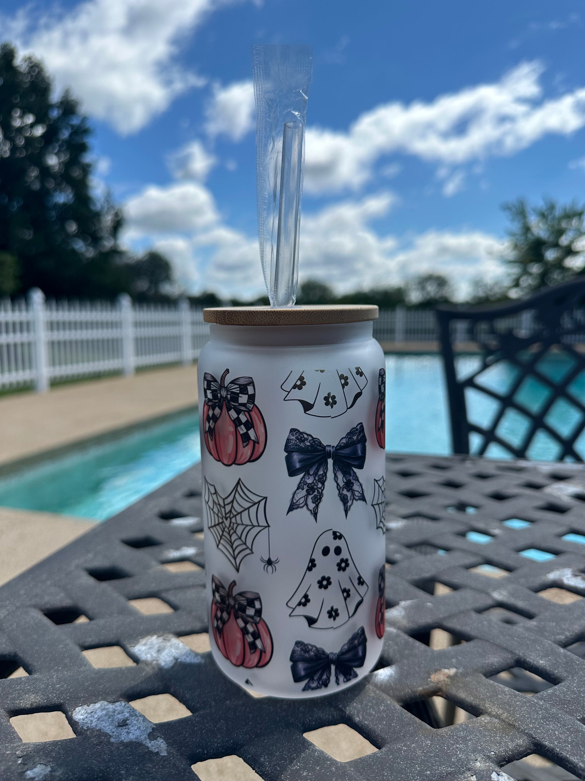 Ghosts, Pumpkins, Spiderwebs Glass Jar