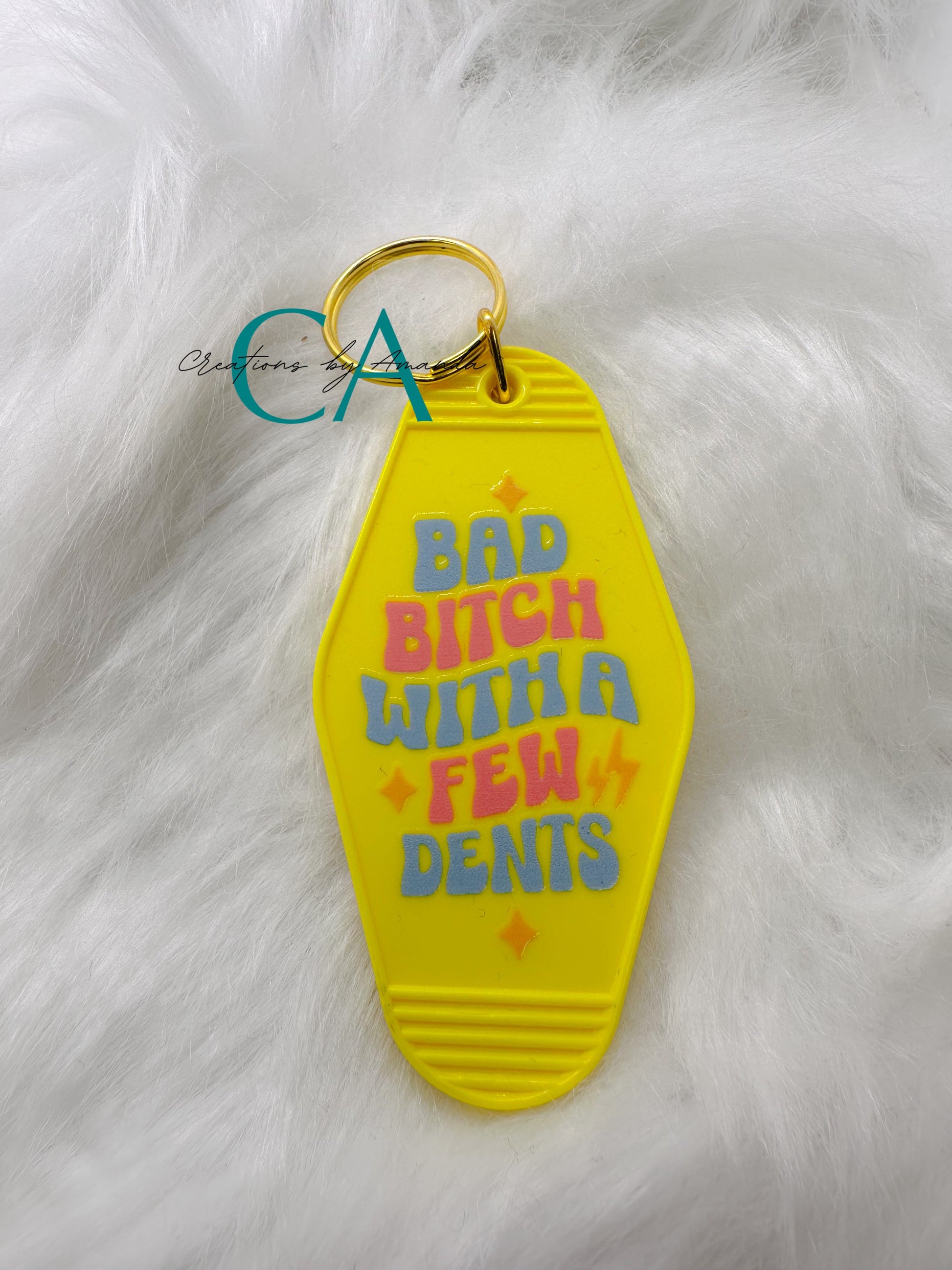 Motel Keychain - Bad Bitch with a Few Dents (Yellow)