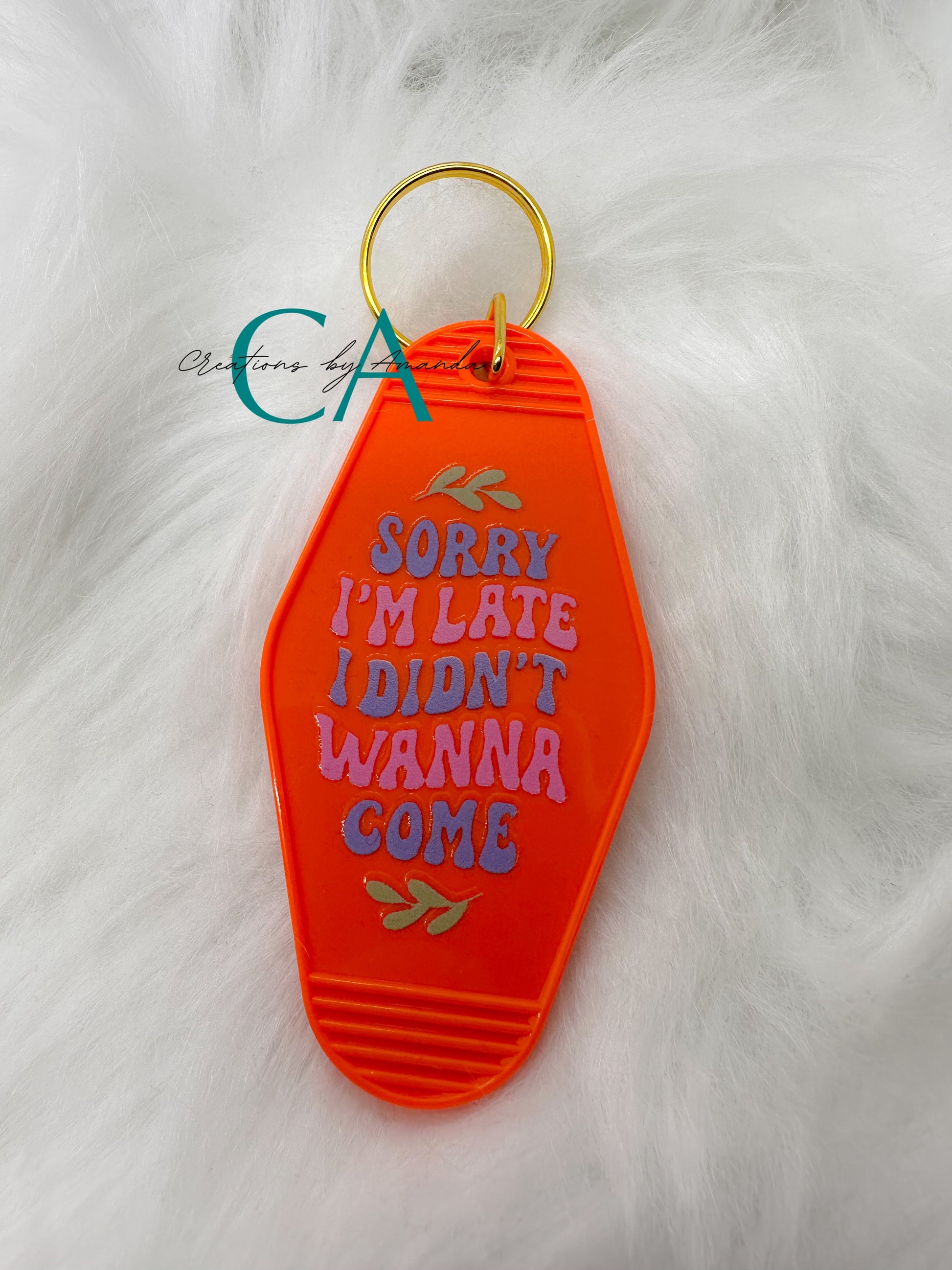 Motel Keychain - Sorry I'm Late, I Didn't Want To Come (Orange)