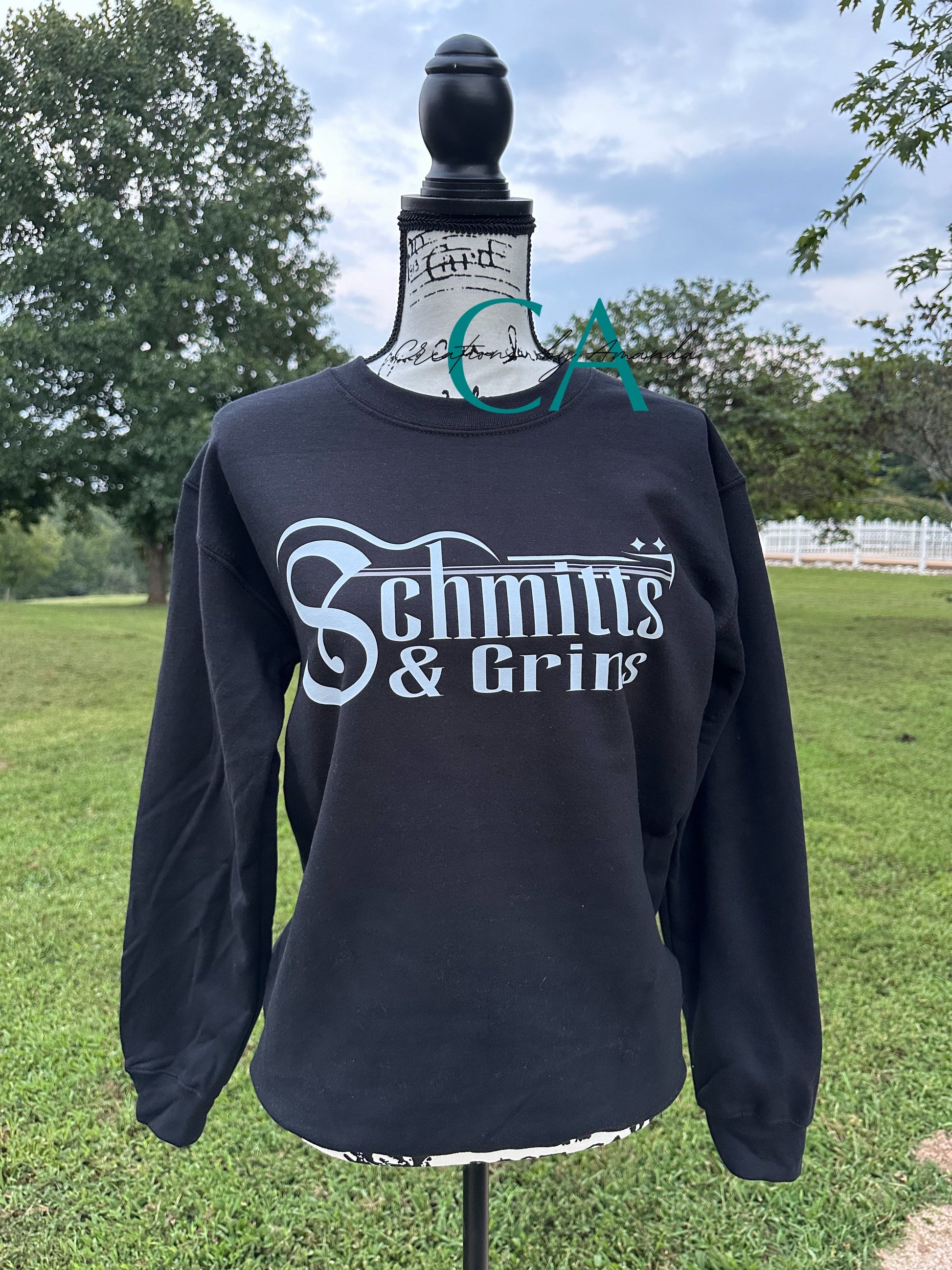 Schmitt & Grins logo on Gildan black or white 100% cotton sweatshirt