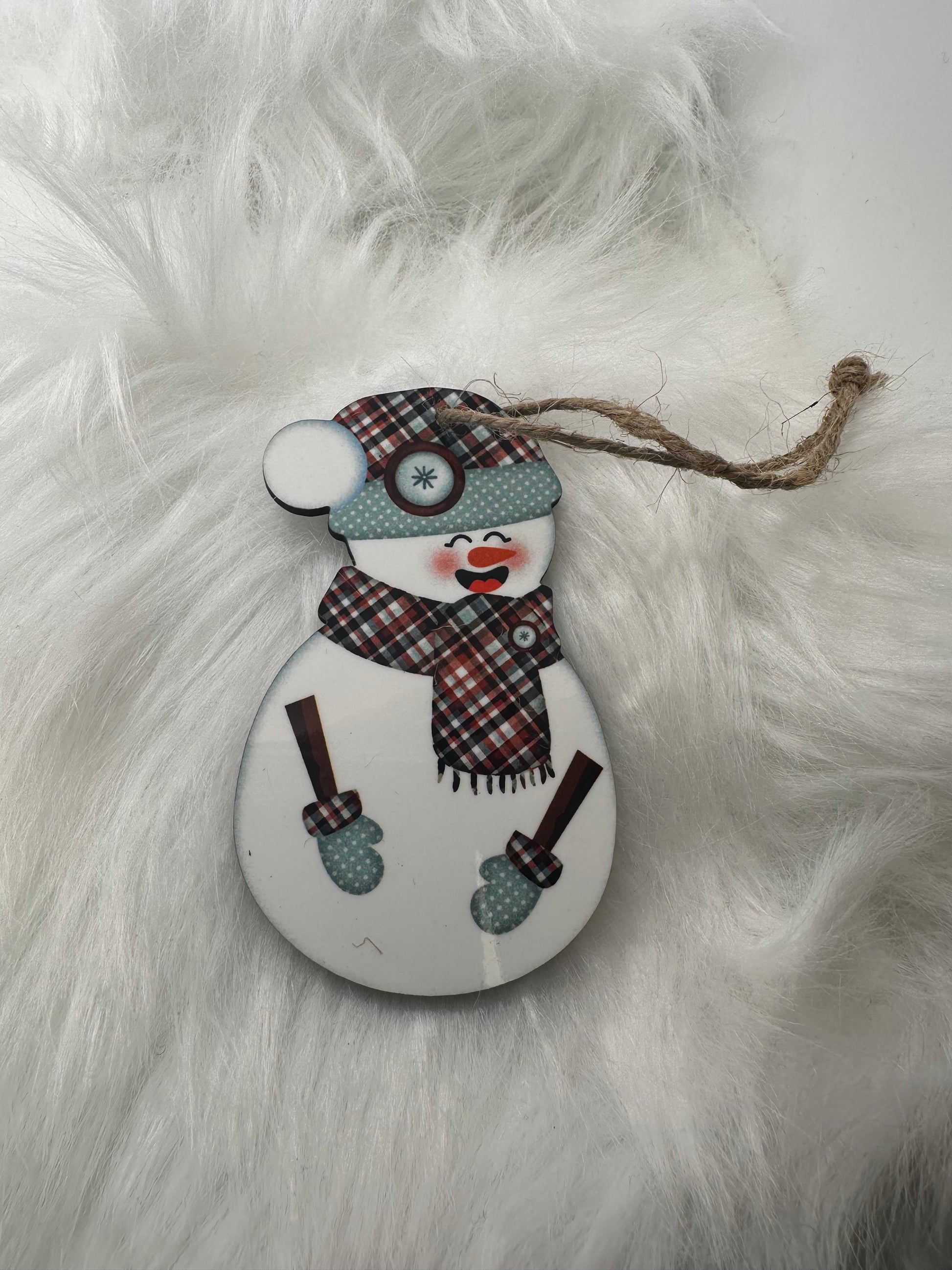 Snowman (Brown/Teal Plaid) Ornament